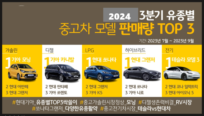 요즘 중고차 시장이 활발하게 돌아가고 있는 가운데, 2024년 가장 인기 있었던 중고 승용차와 구매 시 고려해야 할 사항들을 알아봅니다.