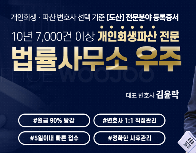 금융 위기, 경제적 어려움은 누구에게나 찾아올 수 있습니다. 이럴 때 필요한 것이 바로 '개인회생'과 '파산'입니다. 그러나 이 과정은 복잡하고 어렵기 때문에 전문가의 도움이 필요합니다. 그래서 오늘은 10년 동안 7,000건 이상의 개인회생 및 파산 사례를 처리한 '법률사무소 우주'를 소개하려 합니다.