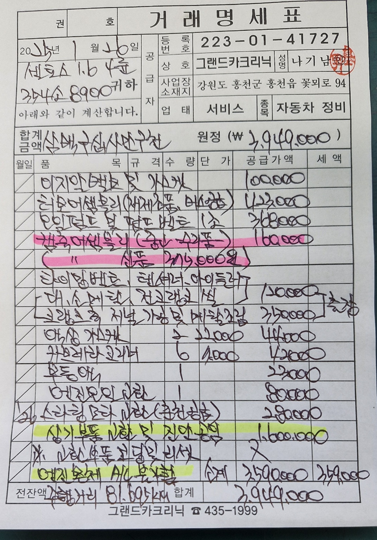 정비 사업소에 들어가 이것 저곳 진단 후 결국 엔진에 문제가 생겼다는 것입니다