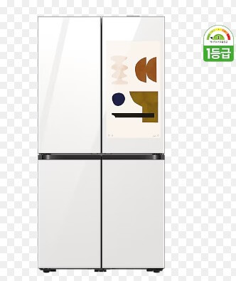 냉장고 / 4 도어 / 총 용량: 842L / 냉장: 499L / 냉동: 497L / 변온: 176L / 상냉장·하냉동 / [에너지] 1등급(24.03 기준) / 소비전력: 41.5 kWh(월) / 월 전기요금: 7420원 / [디자인] 프리스탠딩 / 가로핸들 / 히든심플디스플레이 / 내부디자인: 플랫에지디자인 / 재질: 유광글라스 / [수납/위생] 접이식 선반 / 전문변온실: 맞춤보관실: 7단계 / 탈취(반영구) / 이온살균 / 아이스메이커: 대용량, 자동, 아이스트레이, 크래프트아이스 / 얼음모양: 원형, 큐브 / [스마트/크기] 오토오픈도어 / 김치전문보관 / 스마트싱스 / 스마트디스플레이 / 내부카메라 / WiFi / AI비전인사이드 / 크기(가로 x세로 x깊이): 912x1853x930mm