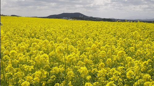 광치기해변 유채꽃밭: 겨울에도 화사한 유채꽃을 볼 수 있습니다.