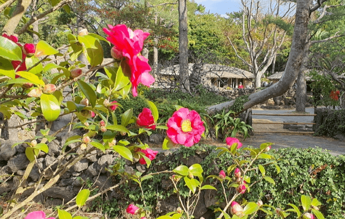 애기동백군락지: 소박하고 조용하며 포근한 마을 위미리에 위치하여 있는 애기동백군락지.