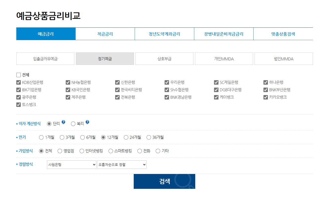 예금상품금리비교 - 은행연합회 - 바로가기