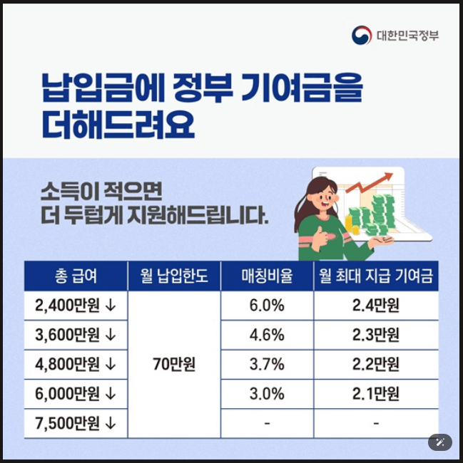 만기 수령액: 5년 동안 꾸준히 저축하면 원금, 이자, 정부 지원금을 포함해 최대 약 5천만 원까지 수령 가능.