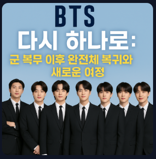 2013년 데뷔 이후 방탄소년단(BTS)은 단순한 K-POP 아이돌을 넘어 세계적인 문화 아이콘으로 성장했습니다. 그리고 2025년, 모든 멤버가 군 복무를 마치고 완전체 복귀를 알렸습니다. 이번 글에서는 군 복무와 복귀, 음악 성과, 사회적 영향, 미래 계획을 중심으로 BTS의 새로운 여정을 조명해 봅니다.