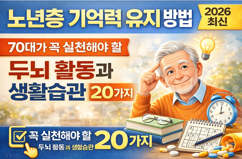 이번 글에서 소개한 20가지 루틴은 70대 노년층이 가장 안전하고 쉽게 실천할 수 있는 기억력 유지 전략입니다.
