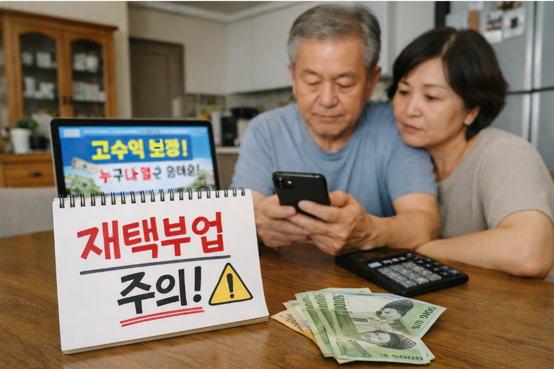 하지만 현실적으로 “집에서 쉽게 돈 번다”는 광고는 대부분 시니어의 불안한 노후 심리를 이용한 경우가 많습니다.