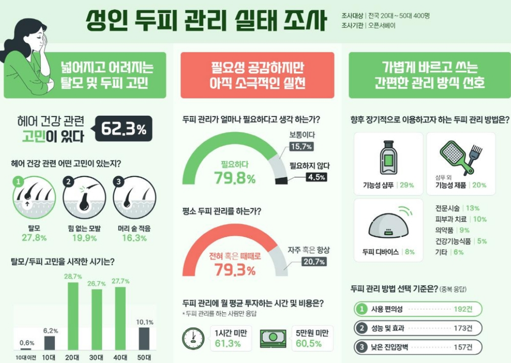 1. 내 두피는 건조/지성/염증 중 어디에 가까운가?