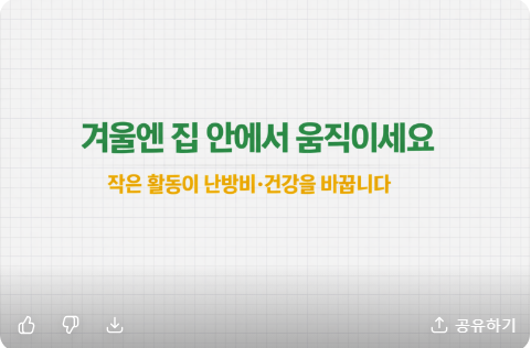 하지만 집 안에서의 가벼운 활동만으로도 체온 유지에 도움이 되고, 자연스럽게 난방비 절약과 건강 관리를 동시에 할 수 있습니다.