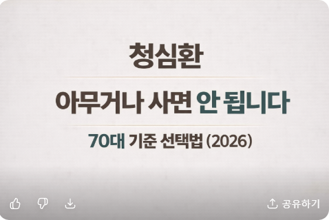 이 글에서는 광고 설명이 아닌, 70대 기준으로 꼭 확인해야 할 선택 기준 3가지와 광동·동인·종근당 청심환 비교 결론을 3분 안에 정리해 드립니다.