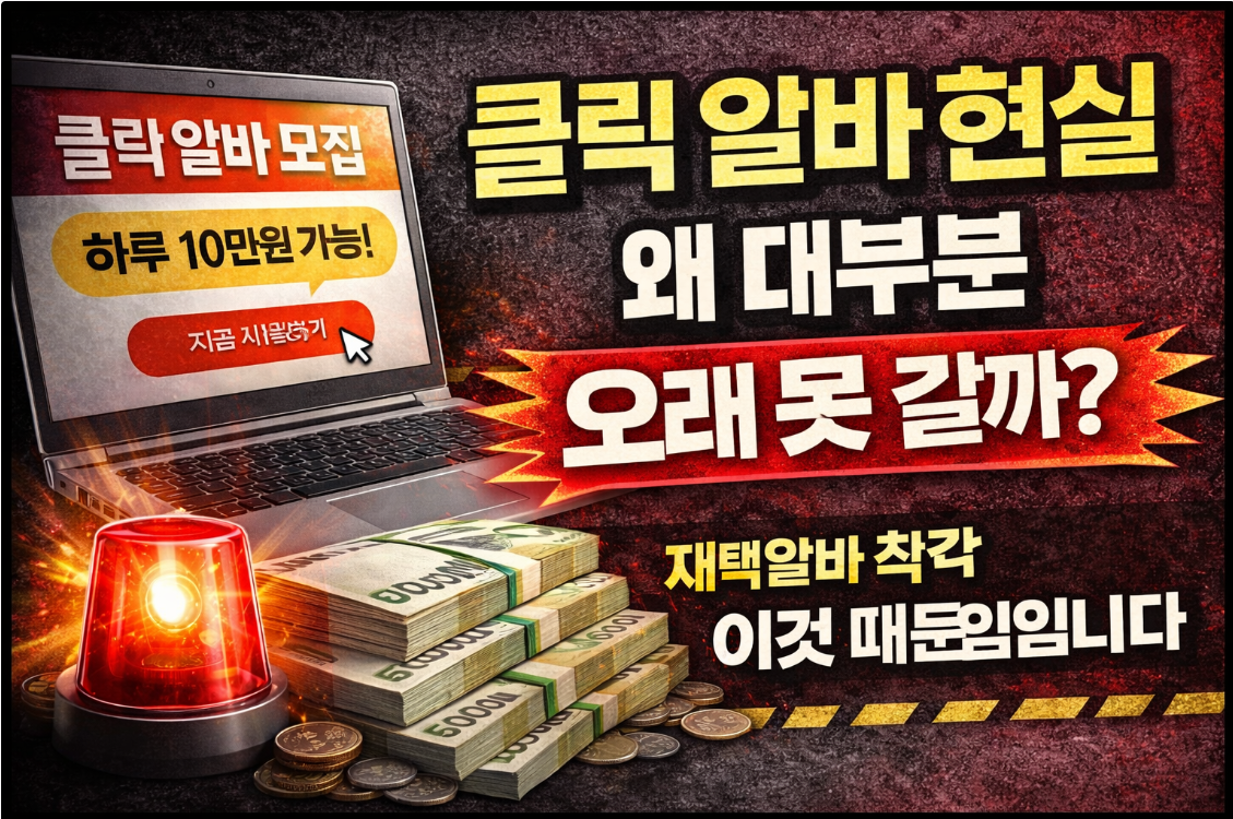 즉, 클릭 알바는 주 수익이 아니라 경험용·보조용으로 보는 것이 현실적입니다.