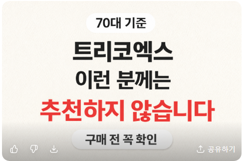 결론부터 말씀드리면, 트리코엑스가 누군가에겐 도움이 될 수 있지만, 70대 기준으로는 ‘추천하기 어려운 경우’가 분명히 있습니다.