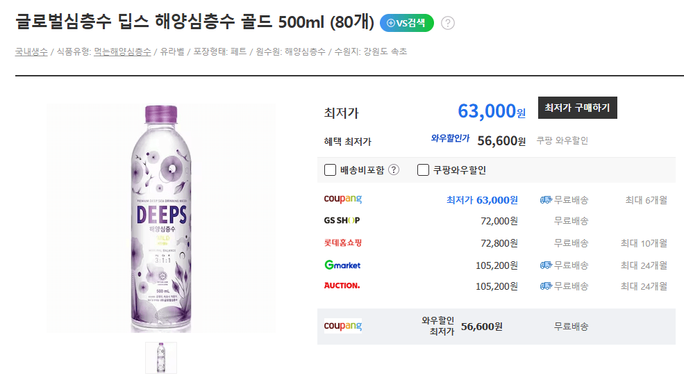 글로벌심층수 딥스 골드 500ml × 80개 61,000원 ~ 94,680원