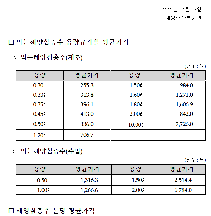 해양심층수 제품 가격 비교