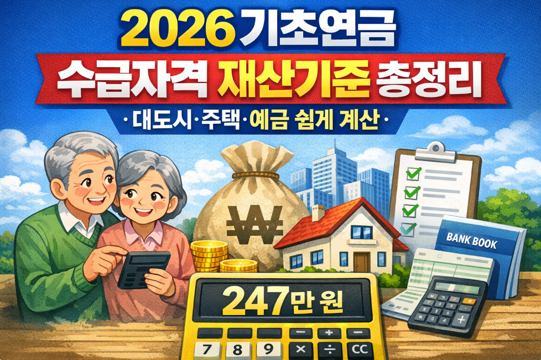 이번 글에서는 2026년 기초연금 재산기준을 중심으로 “집이 있으면 못 받나?”, “예금이 얼마까지 가능하나?”, “대도시는 기준이 더 빡센가?” 같은 질문을 숫자 중심으로 현실적으로 정리해드립니다.